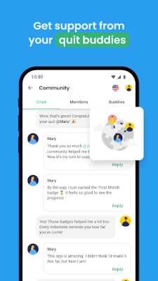QuitNow põhiekraanilt näete koheselt oma edusamme: kui kaua on möödunud viimasest sigaretist, mitu sigaretti olete vältinud, säästetud rahasumma ja tagasi võidetud elupäevad. See läbipaistev ülevaade toimib pideva motivatsiooniallikana. Lisaks pakub QuitNow ainulaadset ja toetavat vestluskeskkonda, kus saate suhelda teiste endiste suitsetajatega, kes jagavad sarnaseid kogemusi ja pakuvad vastastikust tuge. Iga kuu korraldab QuitNow ka otseülekandeid suitsetamisest loobumise eksperdiga, kus saate esitada küsimusi ja saada personaalset nõu psühholoogilt reaalajas. Neile, kes eelistavad struktureeritumat lähenemist, on QuitNow integreeritud samm-sammult kursus, mis juhendab teid läbi kogu loobumisprotsessi.