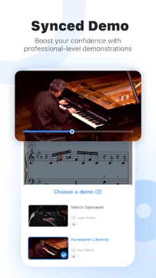 Violy SyncedDemo & MusicSheet on nutikas muusikarakendus viiuli ja klaveri õppimiseks. Avasta tasuta noodipilv, sünkroonitud demovideod ja paindlik saatemuusika. Rakendus pakub ka live-videokõnesid ja nutikat harjutamist, et parandada intonatsiooni ja rütmi.